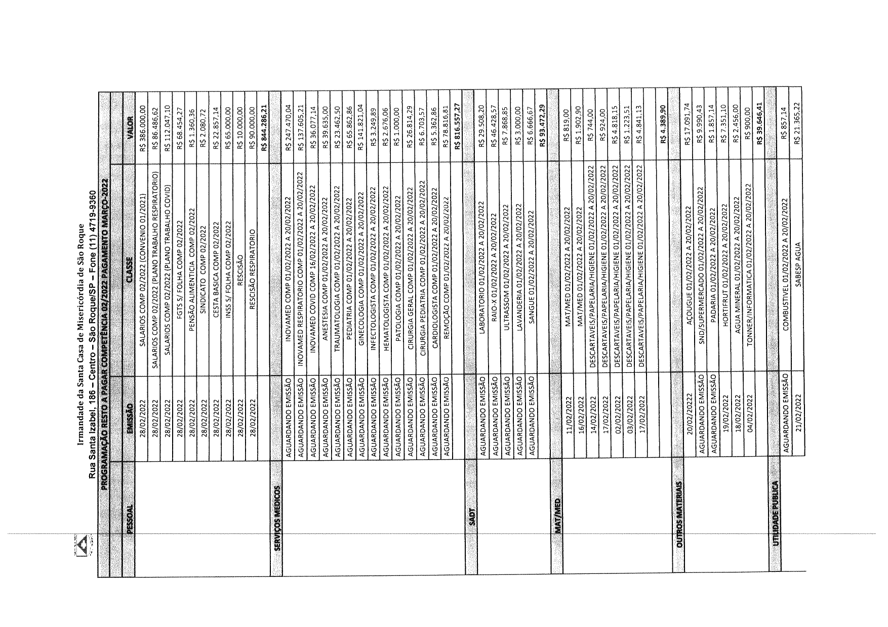 | Documentos Final Digitalizado Nº 1 ao Ofício Vereador Nº 783/2022 | 15/03/2022 | Documentos Final Digitalizado ao Ofício Vereador Nº 783/2022 - Solicita a isenção da cobrança da Taxa de Esgoto da Irmandade Santa Casa São Roque |