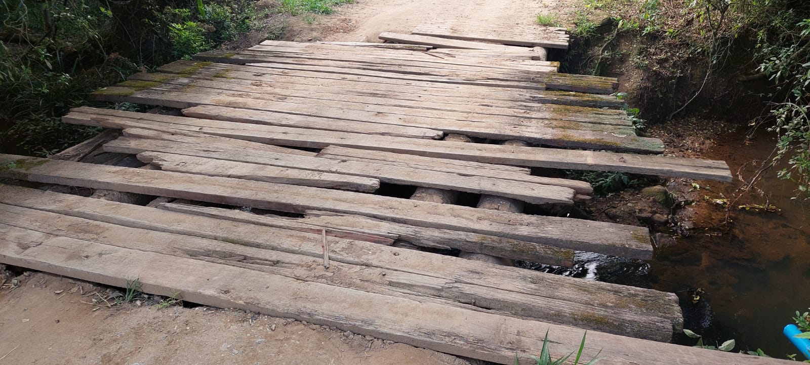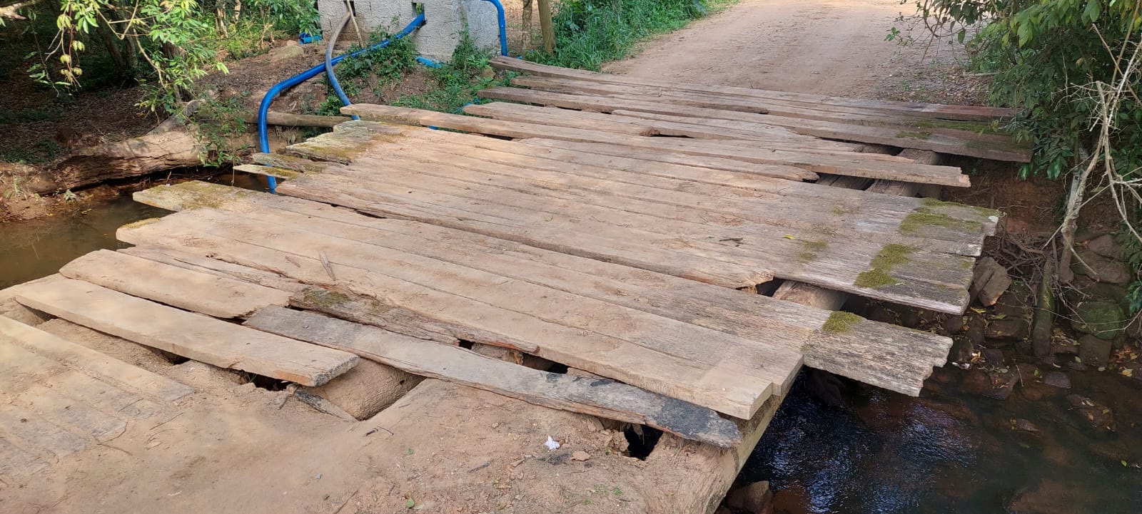 Solicita informações com relação a ponte de madeira existente na Estrada do Rincão Azul, localizada no Distrito de Canguera