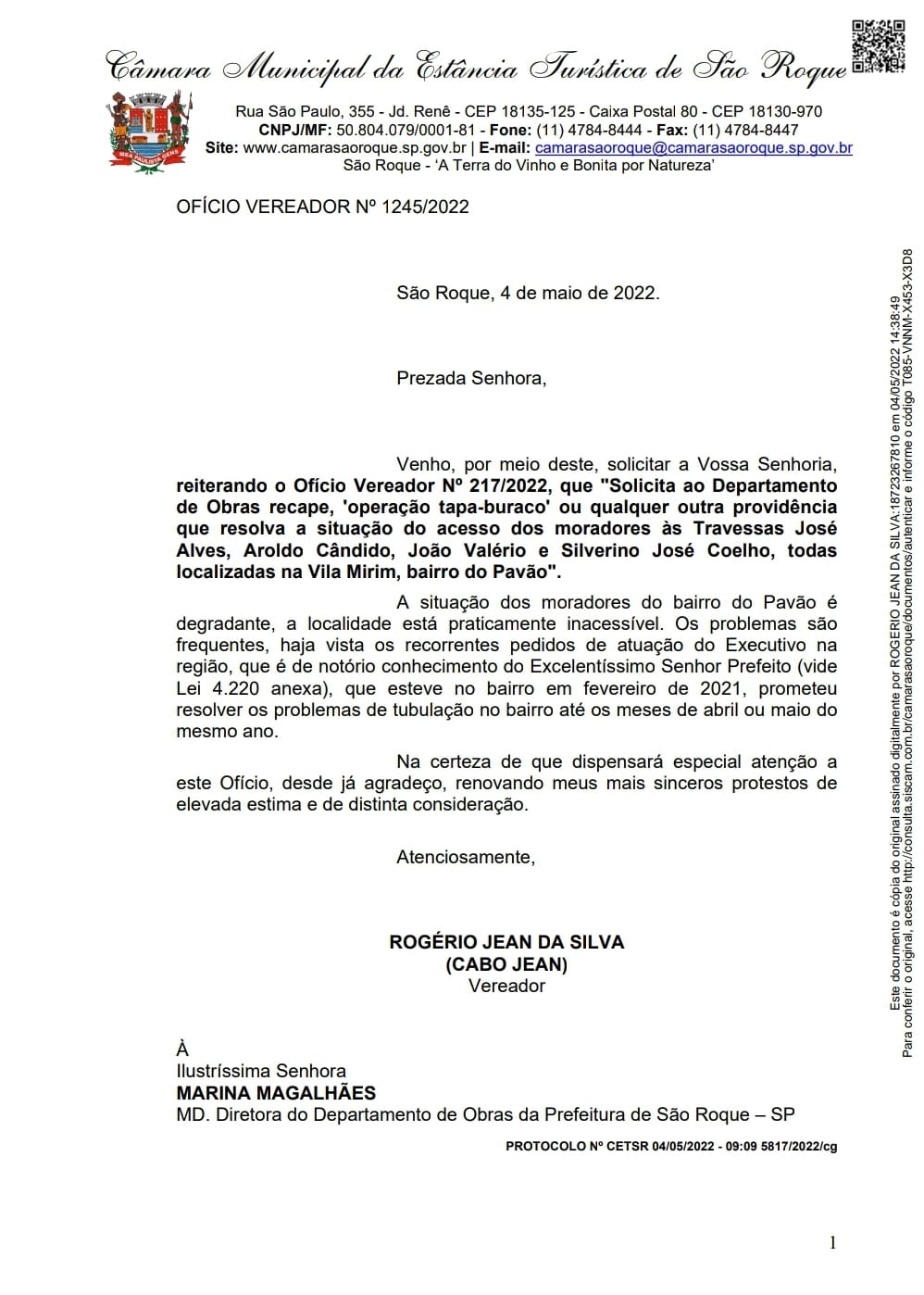 | Ofício Vereador Nº 1245/2022 | 04/05/2022 |