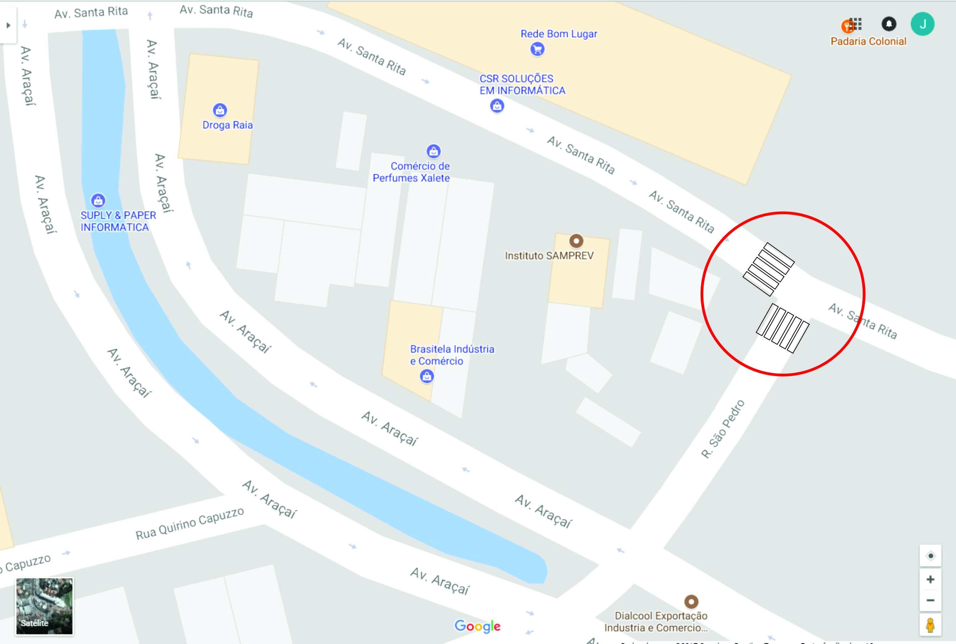 Assunto: Solicita a pintura de faixas para travessia de pedestres na esquina da Avenida Santa Rita com a Rua São Pedro.