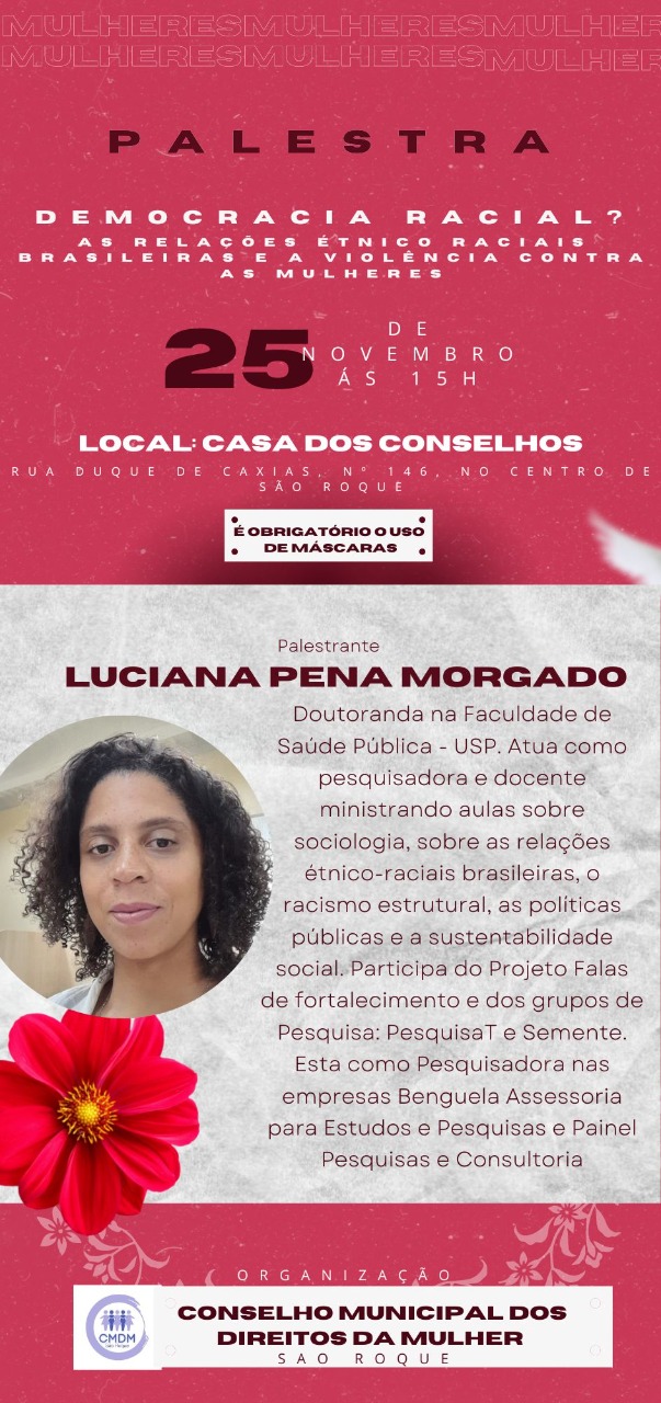 6. Moção Nº 372/2022 - Discussão Única, de 21/11/2022, de autoria de Cláudia Rita Duarte Pedroso, "De congratulações à Luciana Pena Morgado, pela palestra ministrada no Conselho Municipal dos Direitos da Mulher de São Roque, com o tema "Democracia Racial? - As relações étnico raciais brasileiras e a violência contra as mulheres""